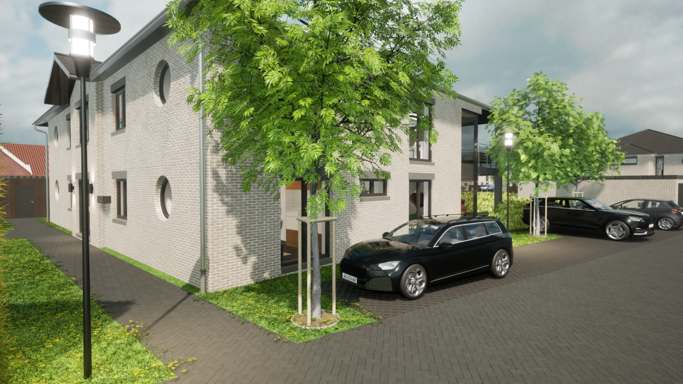 Die Fassaden werden in einer Kombination von hellgrauen Klinkern in Verbindung mit anthrazit farbigen Beton-Stürzen und Außenfensterbänken attraktiv und abwechslungsreich gestaltet.
